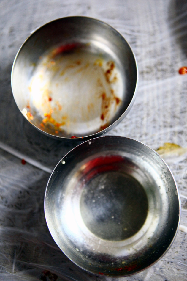 그런데 아래 사진에서 보시는 것처럼 남긴 반찬이 거의 없이 싸~~~악 비웠습니다. 반찬 하나하나가 모두 정갈하고 맛났습니다. 뭐 하나 빠질게 없는 완벽한 한상...!!! 맛이 없어서 젓가락이 가지도 않을 음식으로 상다리가 휘어지게 차리는 것은 낭비입니다. 하지만 이렇게 손님이 남기지 않을 음식으로 상을 가득 채우는 것은 아름다움이란 생각이 드네요.