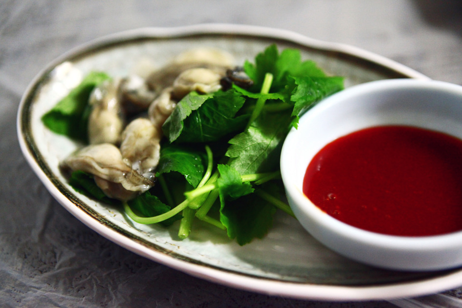 이렇게 먹으니 참나물의 향긋함이 굴향과 어우려져 더욱 좋습니다.