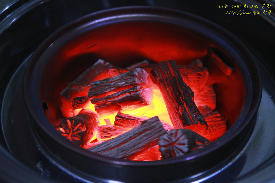 사시미타임이 끝나고 숯불이 준비된다.