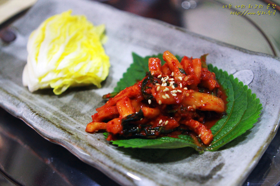 시원한 맛이 일품인 물김치에는 특이하게 돋나물이 들어있었다.