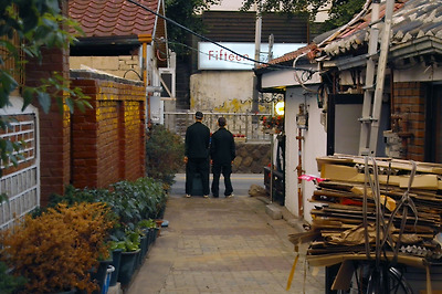 의경이 골목출입을 막는다.