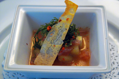 멜론 소스의 참치 타르타르