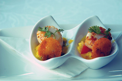 그날그날 다른게 나온다고 하는데 오늘은 샤프론리조또를 곁들인 허브 버터소스의 부르고뉴 스타일의 관자요리가 나왔다.