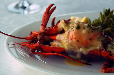 허브와 버터로 잘 마리네이드 된 바닷가재는 우선 입에 즐겁고, 또한 눈에 즐겁고