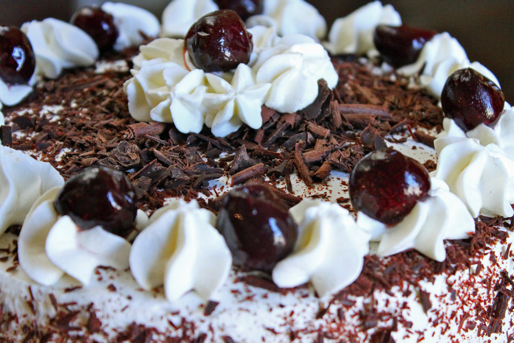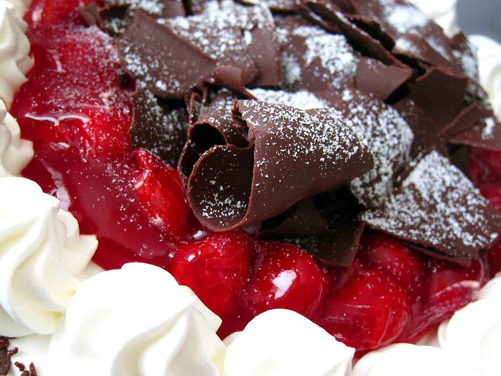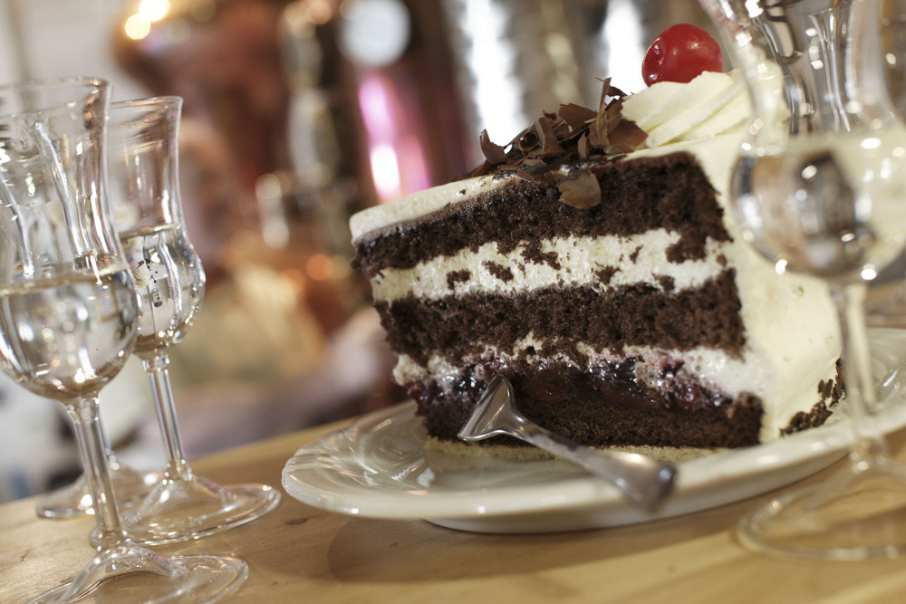 독일어로 슈바르츠발트(Schwarzwalder)는 검은 숲, 키르쉬(Kirsch)는 체리, 토르테(Torte)는 시트 사이에 잼이나 술을 바른 케이크를 의미합니다.