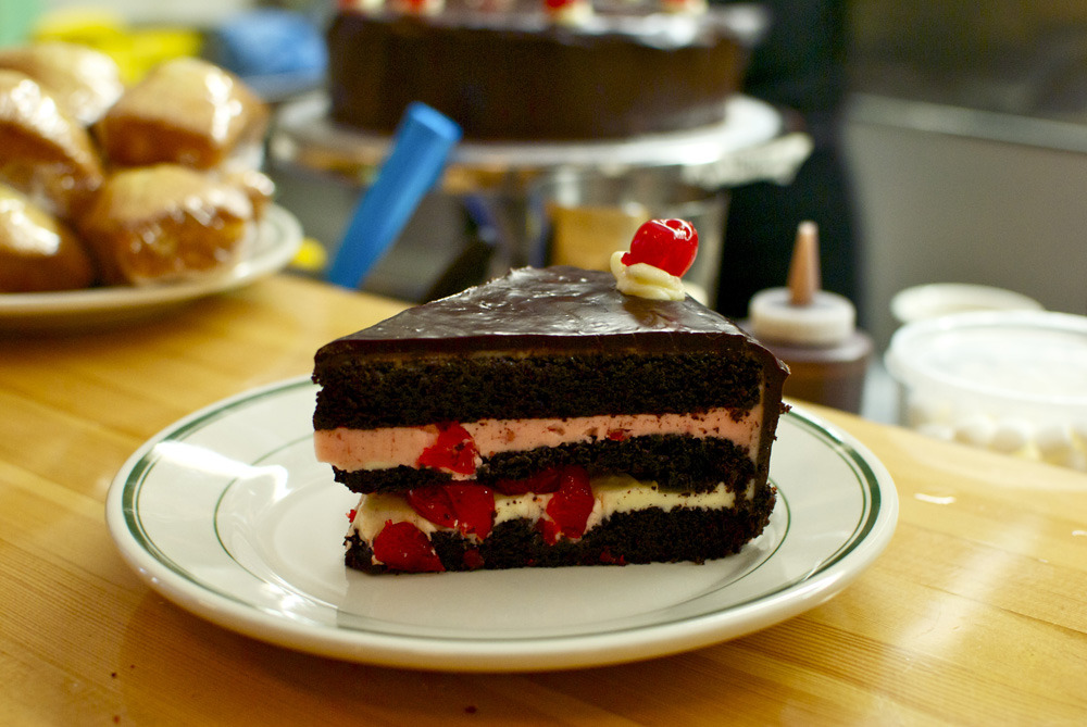 다만, 체리 대신 포도로 장식하거나 술을 적게 쓰는 등 제과점마다 차이가 납니다.