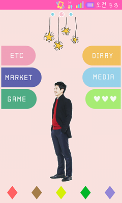 (포스트잇 아이콘 누르면 실행되는 어플들은 기본적인것들 마켓,카카오톡,텍스트뷰어,헬로키티다이어리 등등)