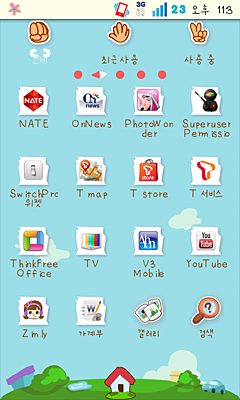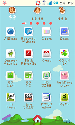 그 외 아이콘: 생부 (클릭하면 실행되는 어플들 마켓,헬로키티 다이어리,싸이월드,카카오톡)