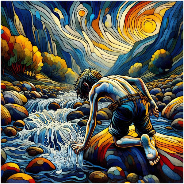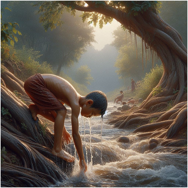 한여름 무태냇가 목물로 몸식히며