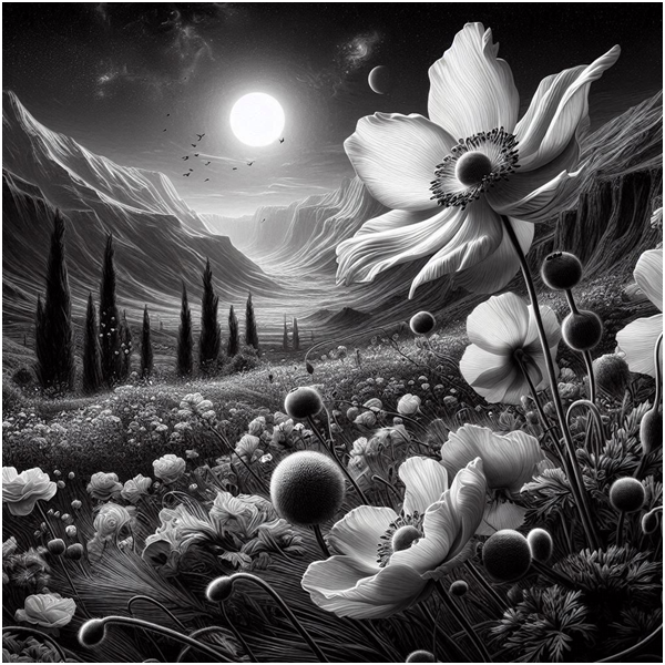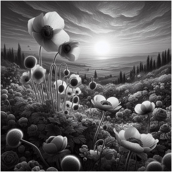 A. 회복력의 축하: 이 섹션은 아네모네를 회복력의 상징으로 확립하고, 다른 가을 꽃의 퇴색한 아름다움과 대조합니다. 아네모네가 늦은 계절에 번성할 수 있는 능력은 활기찬 움직임과 색상의 이미지를 통해 강조됩니다.