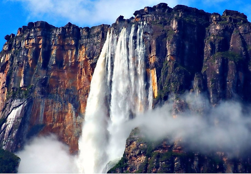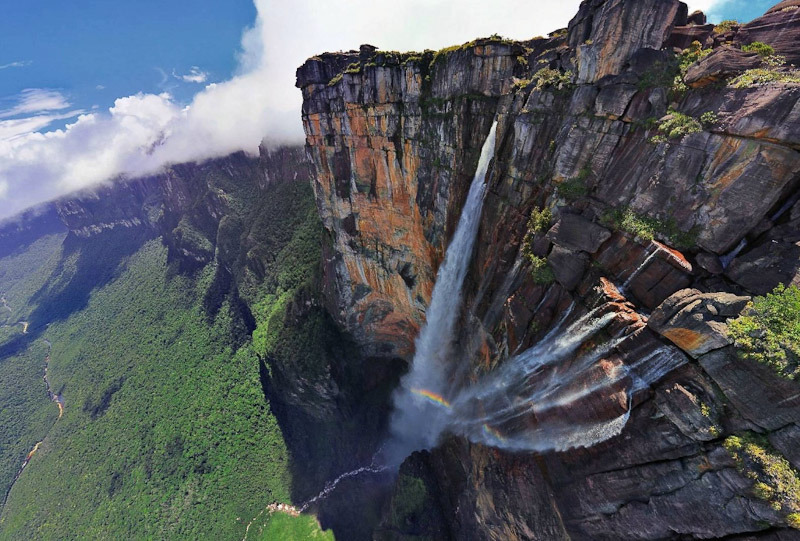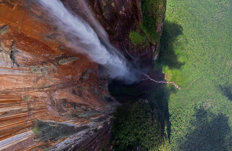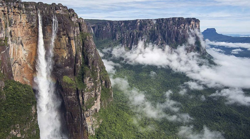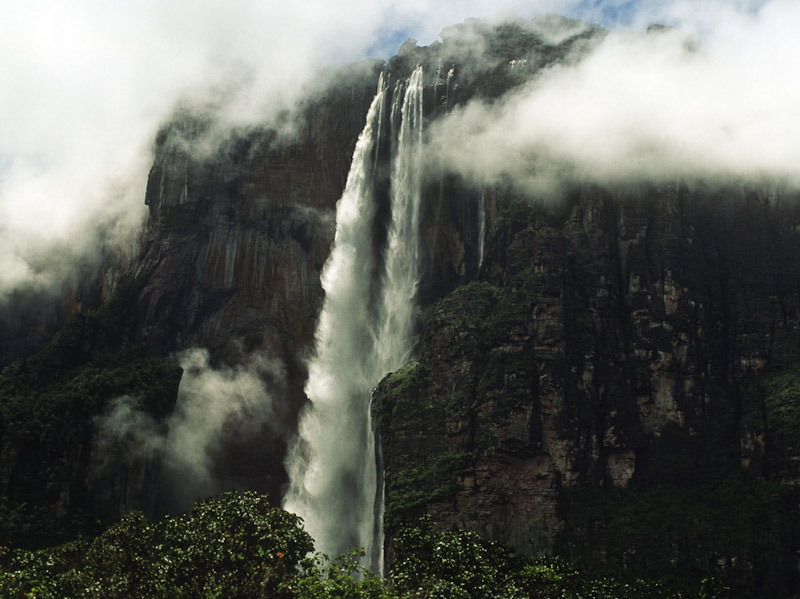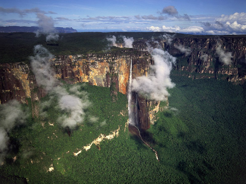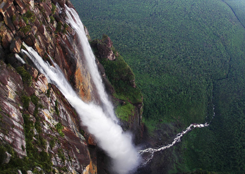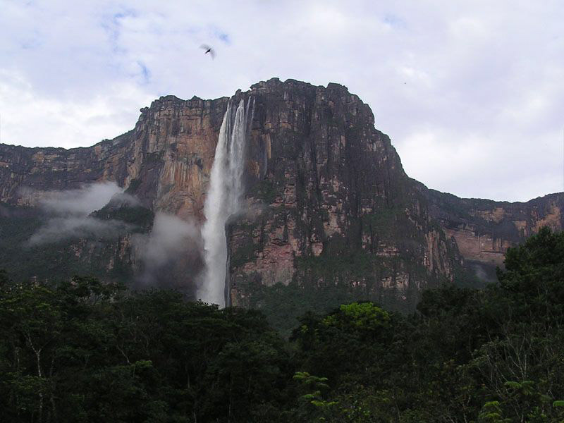 | 엔젤폭포 (Angel falls) 는 베네수엘라 볼리바르 주의 카나이마 국립공원에 있는 폭포이다. 총 높이 979m, 최대 낙차 807m, 너비 150m로 세계에서 가장 높은 폭포이며 유수량이 적을 때는 물이 바닥에 떨어지기 전에 안개가 되어 날아가기도 한다. 거의 수직으로 떨어지는 폭포로 1910년 베네수엘라의 탐험가 에르네스토 산체스 라 크루즈에 의해 처음 발견되었다. 1933년 11월 18일, 비행기로 광물자원을 탐사하던 지미 엔젤(James Angel)에 의해 재발견되어 널리 알려졌고 폭포의 이름도 그의 이름에서 따왔다. |