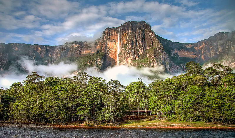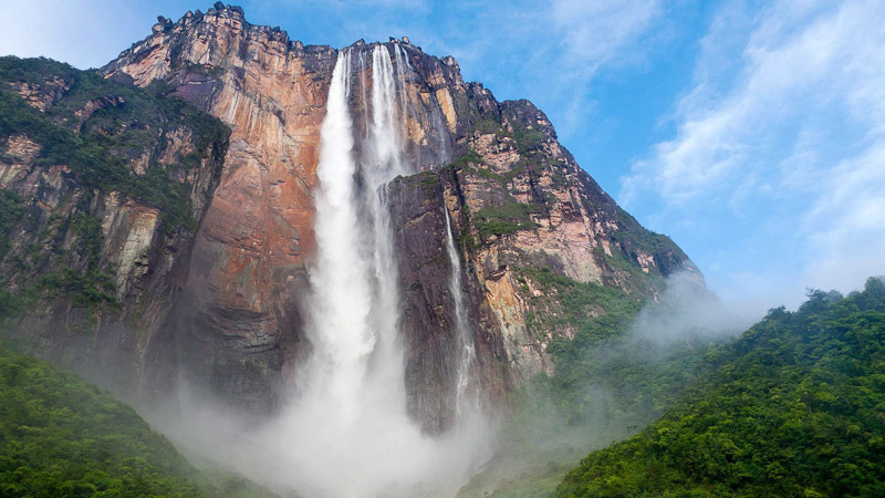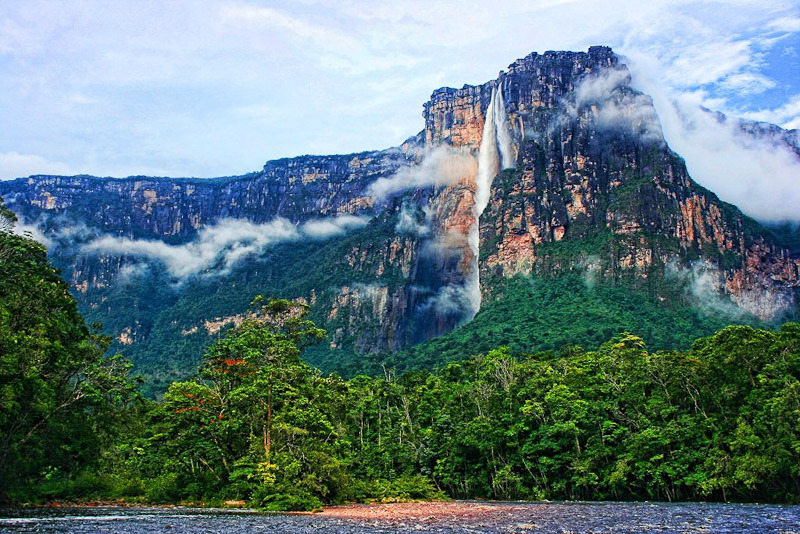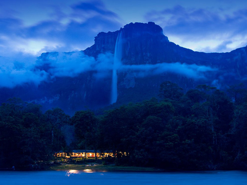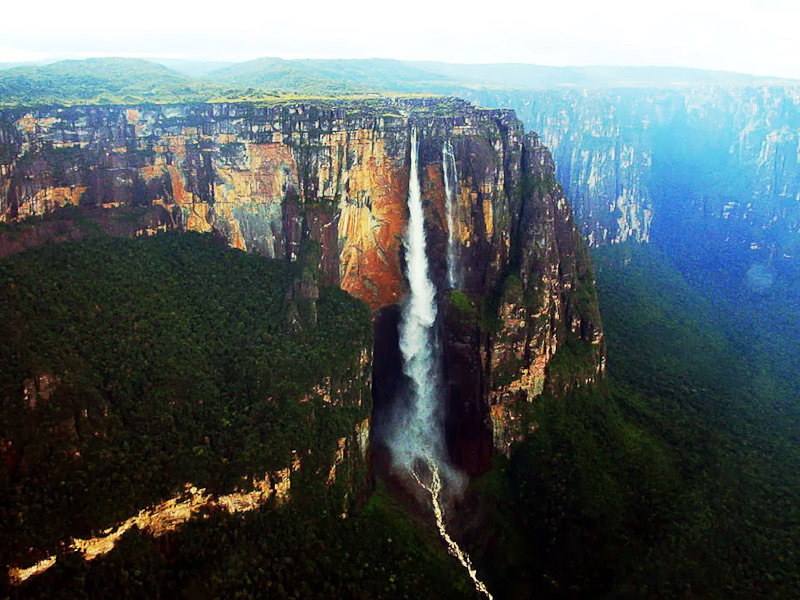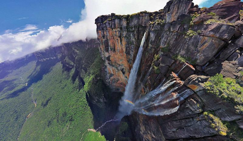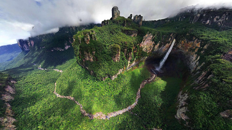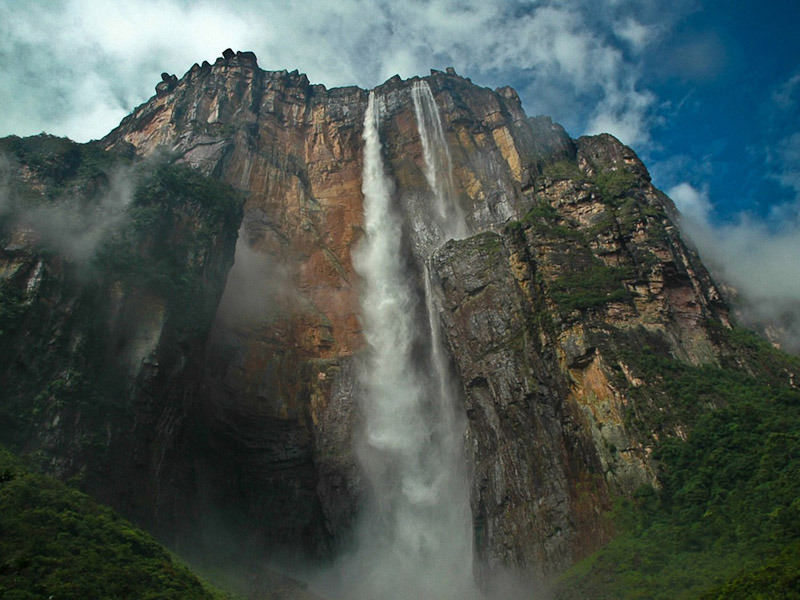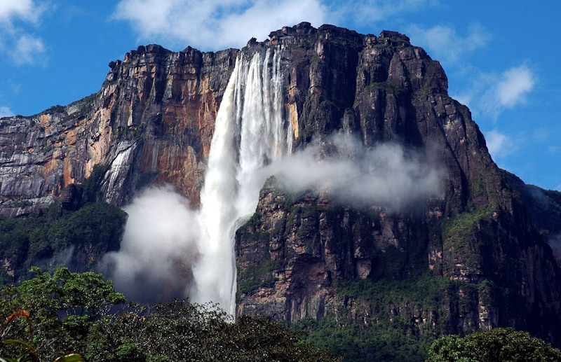 | 엔젤폭포 (Angel falls) 는 베네수엘라 볼리바르 주의 카나이마 국립공원에 있는 폭포이다. 총 높이 979m, 최대 낙차 807m, 너비 150m로 세계에서 가장 높은 폭포이며 유수량이 적을 때는 물이 바닥에 떨어지기 전에 안개가 되어 날아가기도 한다. 거의 수직으로 떨어지는 폭포로 1910년 베네수엘라의 탐험가 에르네스토 산체스 라 크루즈에 의해 처음 발견되었다. 1933년 11월 18일, 비행기로 광물자원을 탐사하던 지미 엔젤(James Angel)에 의해 재발견되어 널리 알려졌고 폭포의 이름도 그의 이름에서 따왔다. |