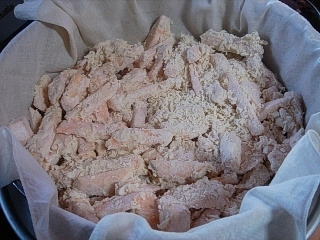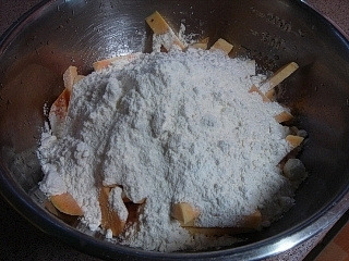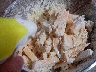 쫀득쫀득 너무 간단한 고구마떡 만들기 고구마 색다르게 먹는법... 쫀득쫀득 너무 간단한 고구마떡 저도 이제 나이가 들긴 들었나봐요 예전 엄마가 해주시던 음식들이 그립고 가끔 급 댕겨 만들게 되네요. 고구마가 맛있을 요즘 간식으로 만들어 먹기 딱...!!! 좋은 쫀득쫀득 고구마떡이랍니다~ 2인분 60분 이내 아무나 계량법 안내 [재료] 밤고구마 큰것 1개, 밀가루 원하는만큼,소금 조금,물 조금 1..고구마를 손가락 크기만큼 적당한 크기로 자른다. 2..물은 넣지 않은 상태로 고구마와 밀가루 소금을 버무려준다. 3..스프레이로 물을 뿌려가며 골고루 반죽을 해준다. (반죽이라기보다 밀가루가 고구마에 달라붙을정도... 마른가루가 살~짝 엉겨서 서로 붙을정도... 마른가루가 골고루 보여도 상관없음) 4..어느정도 밀가루가 고구마에 붙으면 찜통에 보를 깔고 반죽한 고구마를 담아준다. (이때 가장자리를 좀더 높게 담아주고 가운데는 좀 낮게 담아준다) 5..뚜껑을 덮고 쎈불에서 5분정도 김을 올려주고 중불로 뜸을 드린다. 6..고구마를 잘라봤을때 부드럽게 부러지면 다 익은것~ (날가루같은 밀가루가 넘 많이 보이는것 같으면 스프레이를 골고루 한번 더 해주고 뚜껑을 닫아 한김 더 올려주면 된다) 7.. 찜통에서 꺼내 식혀준다. (밀가루는 짭쪼름~쫀득하고 고구마는 달달~하고 부드럽고 식으면 더 쫀득쫀득 맛있답니다) |