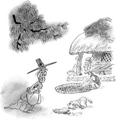 양반은 시치미를 떼고 “노인장, 오늘은 더위가 대단합니다그려. 물 한사발 얻어마실 수 있겠소이까?”