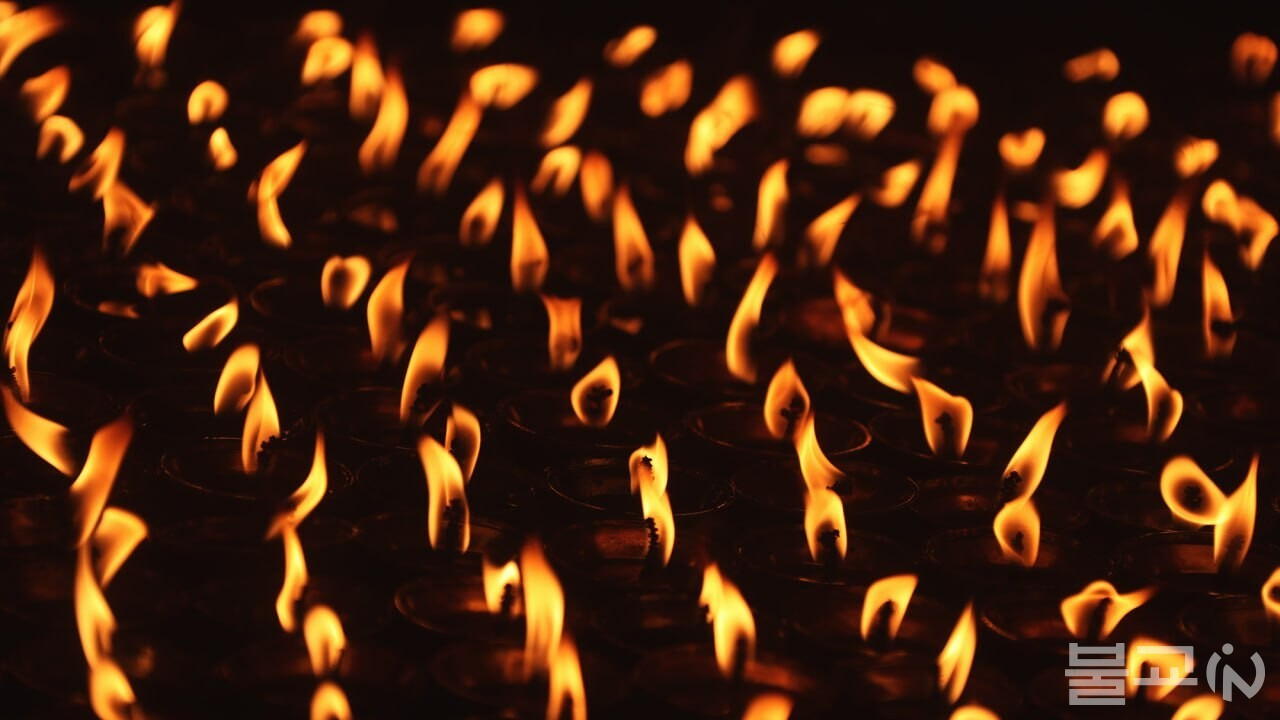 부처님 탄생을 찬탄하기 위해 불자들이 발원을 담아 촛불공양을 올리고 있다.