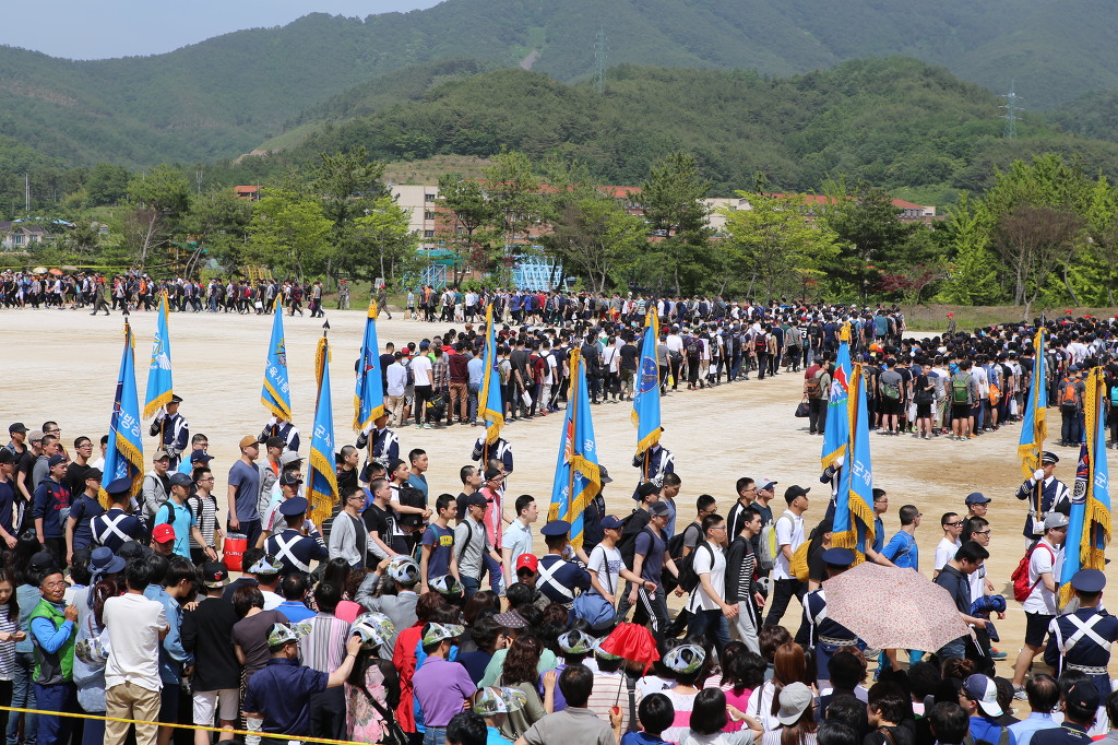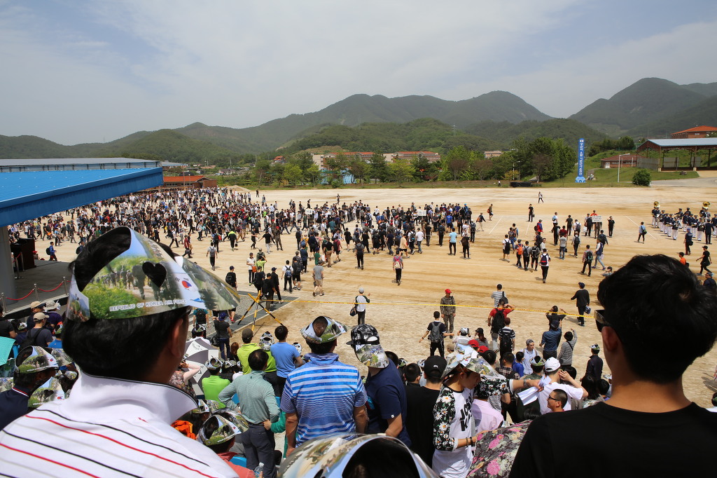 한꺼번에 수 백 명이 집합하다보니 도대체 어디에 줄을 섰는지 보이질 않았고 찾을 수도 없었다. 몇 가지 의식을 치르고 난 뒤 마지막으로 가족들 앞에서 운동장 한 바퀴를 돌아들어갔다. 가족들은 마치 전쟁터로 가는 아들의 마지막 모습을 보려는 듯 발 뒷꿈치를 치켜들고 아들을 찾기에 기를 썼다. 나 역시 사람들로 이루어진 벽을 뚫고 맨 끝 줄까지 두 눈을 부릅뜨고 아들을 찾았다. 방금 함께 있다 보내놓고도 몇 년을 못 본 듯이 아들을 찾는 내 열정은 과연 대한민국의 엄마였다.