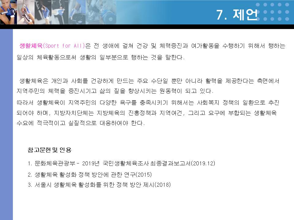 지방자치단체 생활체육 활성화 방안 작성자스포피아협동조합|작성시간20.12.05|조회수109 목록 댓글 0 글자크기 작게가 글자크기 크게가 다음검색 현재 게시글 추가 기능 열기 북마크 공유하기 신고 센터로 신고 댓글 댓글 0 댓글쓰기 답글쓰기 댓글 리스트