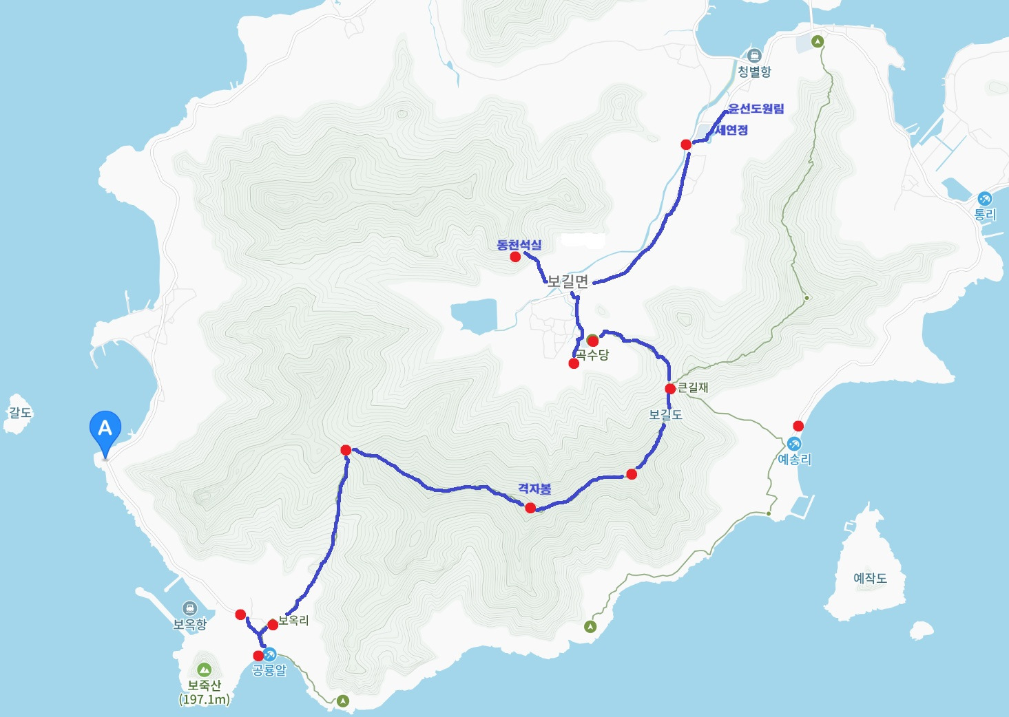 3. 산행코스 : 공룡알해변 -뽀래기재-격자봉-큰길재-곡수당-낙서재-동천석실-윤선도원림(세연정)