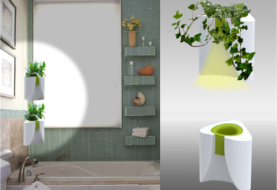 화장실에는 각종 냄새와 암모니아 가스가 발생해 불쾌감을 줄 수 있다. 상쾌하면서도 편안한 배변을 볼 수 있게 도와주고 환경을 좋게 하기 위해서는 냄새와 암모니아 가스 등을 제거하는 능력이 뛰어난 식물을 배치하는 것이 좋다. ▶ 화장실에 좋은 식물로는 관음죽, 테이블야자 등이 좋다. 관음죽은 암모니아를 흡수하는 능력이 뛰어난 식물이면서 어둡고 좁은 화장실에서도 잘 자란다.  어둡고 좁은 화장실에 적합하도록 설계된 화분. 화분에는 LED 광이 설치되어 있고 벽의 모서리에 부착하도록 고안된 것이 특징이다.