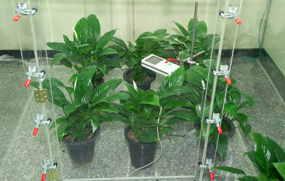 공기정화 효과를 제대로 보려면... 아파트 108m2에서 거실 넓이가 약 20m2 정도 되는 공간에 거주하는 사람이 실질적인 새집증후군 완화 효과를 보기 위해서는 최소한의 식물이 필요하다. 농촌진흥청 화훼과에서 연구한 결과에 의하면, 화분을 포함한 식물의 높이가 1m이상인 큰 식물일 경우에는 3.6개 정도가 필요하고, 1m 이하 중간크기의 식물은 7.2개, 30cm이하의 작은 식물은 10.8개를 놓아야 공기정화 효과를 볼 수 있는 것으로 조사됐다. 특히, 날씨가 추워지는 겨울철에는 대부분 아파트 문을 닫고 생활하기 때문에 집안에서 발생하는 포름알데히드를 비롯해 어산화탄소 등 여러 가지 오염원은 가족의 건강에 악영향을 미친다. 이러한 환경오염원을 효과적으로 제거하기 위해서는 식물의 특성을 고려하여 적절히 배치하는 기술이 매우 중요하다.  농촌진흥청이 새집증후군과 각종 화학물질을 제거해 주는 공기정화식물의 효과를 측정한 결과, 적당한 식물의 수와 실내 환경과 식물의 특성을 고려해 배치하면 공기정화 효과를 톡톡히 볼 수 있다는 연구결과를 내 놓았다. 사진은 공기정화식물의 효과를 측정하는 모습.