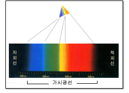 - 긴파장일 경우 붉은색이 보이고 짧은 파장일 경우 보라색이 느껴진다. - 빛의 파장단위 : nm (nanometer), nm=10m/100억