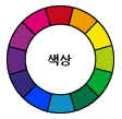 - 색상환, 색환 : 색채를 식별하는 데 필요한 색채의 명칭이며 이 색상의 성질이 유사한 것끼리 둥글게 배열하여 만든 것이다. - 멘섹의 10 색상 : 빨(R), 주(YR), 노(Y), 연(GY), 녹(G), 청(BG), 파(B), 남(PB), 보(P), 자(RP) - 유사색 : 색상환에서 가까운 거리에 있는 색들을 말한다. 색상치가 적다. - 반대색 : 색상환에서 먼 거리에 있는 색들을 말한다. 색상차가 크다. - 보색 : 색상환에서 대각선 방향의 정반대에 있는 색을 말한다. 드 색을 섞으면 무채색이 된다. ■ 명도(Value, Lightness) 먼셀 표색계에서는 Value로 표기하며, 간단히 말해서 색의 밝고 어두운 정도를 명도라고 한다.