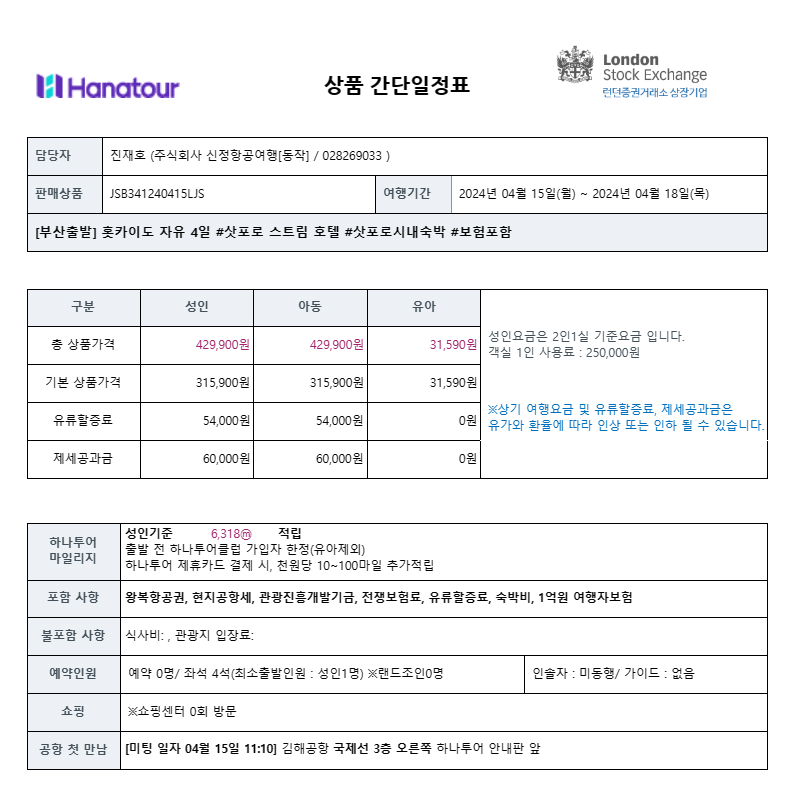 ** 하나투어 상품은 예약을 어디서 하든 요금은 동일합니다. 진실장에게 문의 주시면 회원님 개개인의 여행 스타일에 맞춰 더 즐거운 여행이 될 수 있도록 도와드리고 여행지에 맞는 특별 사은품도 제공해드리니 많은 이용 부탁드립니다. !