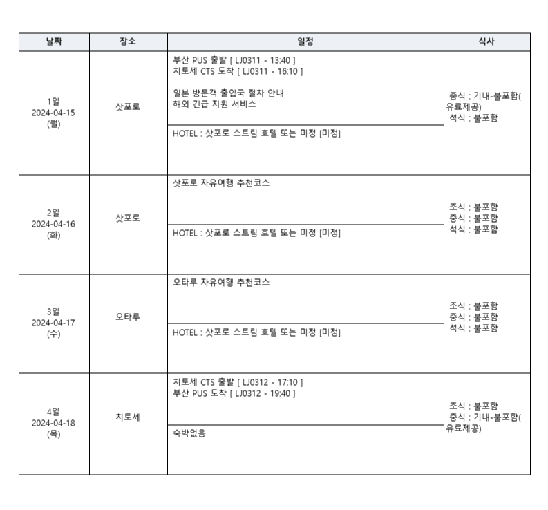 [특가상품] 출발임박 부산출발 홋카이도 자유 4일 / 4.15, 23, 24 출발 / 429,900원 #삿포로 스트림 호텔