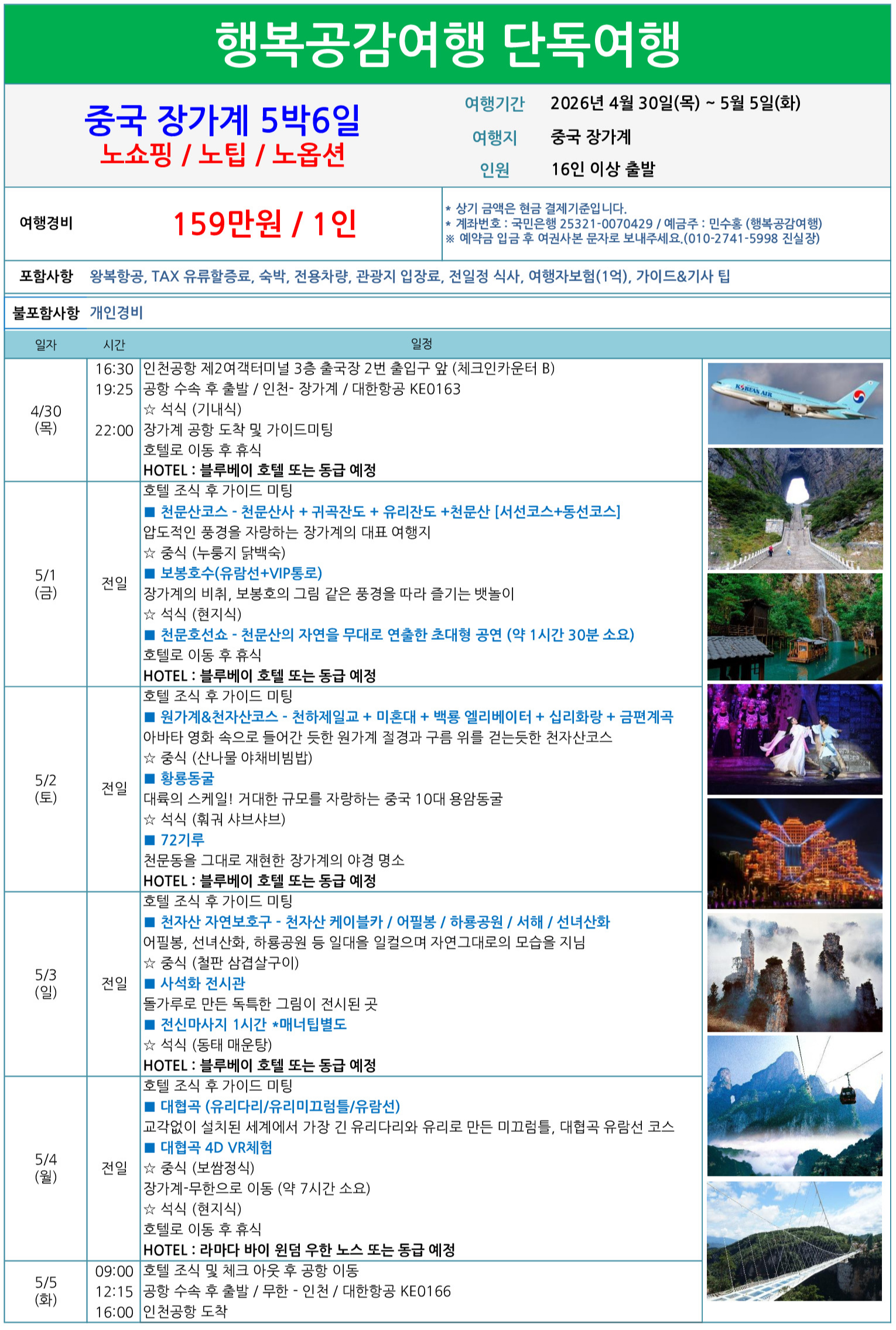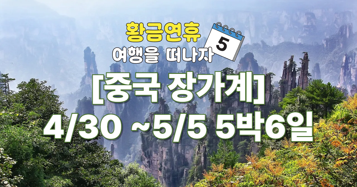 연휴기간 이용하여 여유로운 6일 일정의 장가계 여행 떠나보세요.!