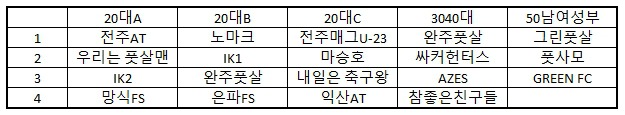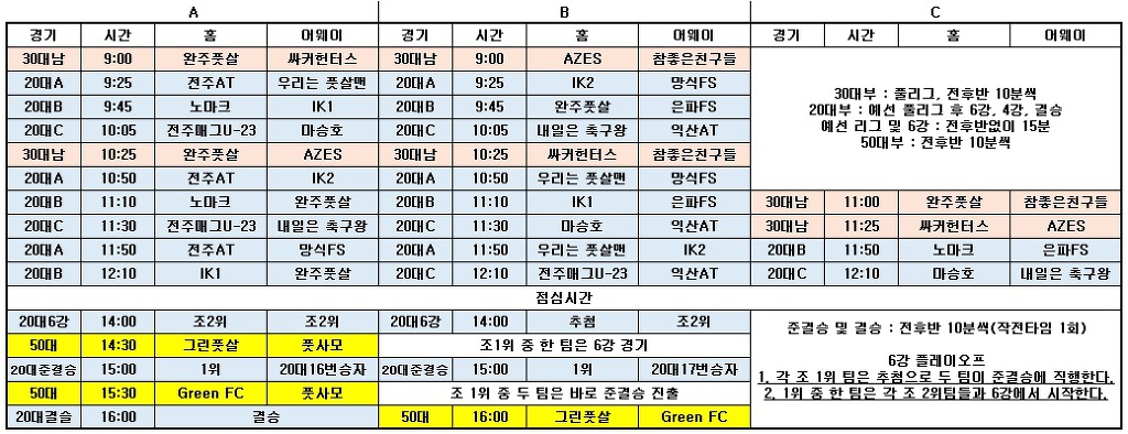 20대부 준결승 및 결승 : 전후반 10분씩(작전타임 1회)