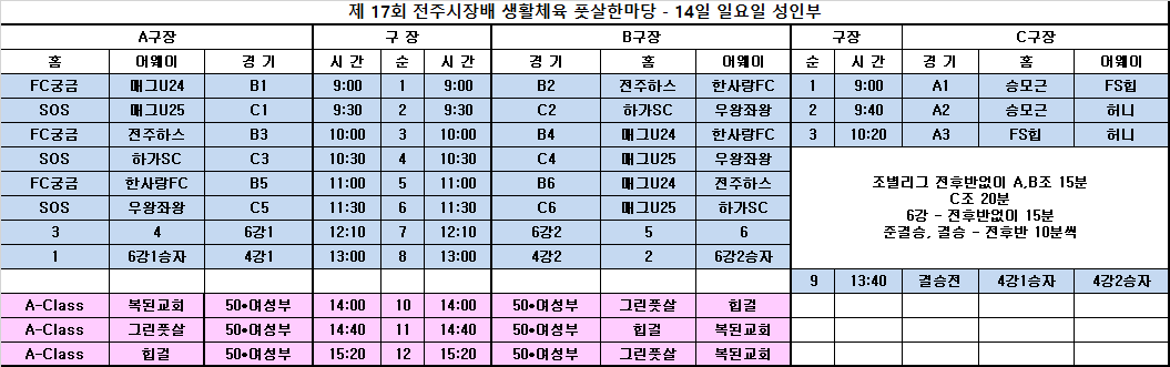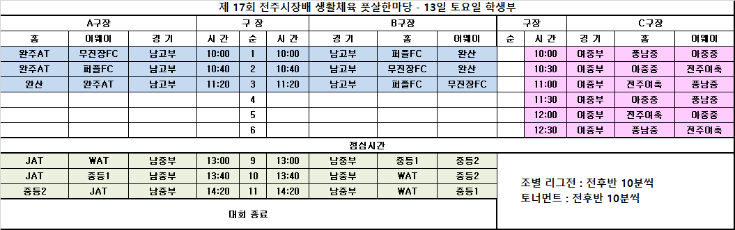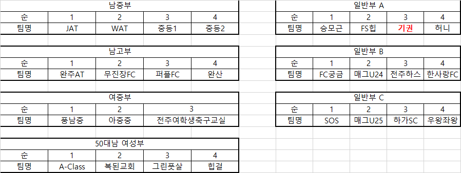 제 17회 전주시장배 생활체육 풋살한마당 조편성 알림 작성자이슬옹|작성시간21.11.12|조회수517 목록 댓글 0 글자크기 작게가 글자크기 크게가 다음검색 현재 게시글 추가 기능 열기 북마크 공유하기 신고 센터로 신고 댓글 댓글 0 댓글쓰기 답글쓰기 댓글 리스트