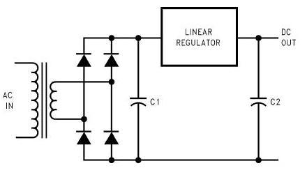 Linear Power Supply는 입력되는 AC 전원을 트랜스포머(변압기)를 사용하여 낮은 AC 전압으로 변환한