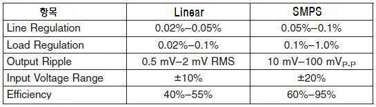 SMPS Power Supply와 Linear Power Supply는 구동 방법의 차이로 인해 서로간의 장단점이 있는데