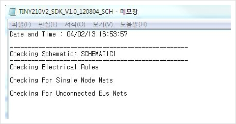 에러가 있을 경우에는 메모장에 어떤부분이 어떻게 에러가 발생했다는 표시와 함께 Schematic에 그 부분이 파란 원으로 표시가 됩니다.