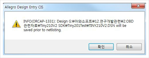 회로도를 저장하고 넷트리스트를 뽑겠다는 메세지가 출력되고 확인을 눌러서 실행을 시키면 됩니다.