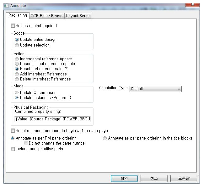 의미는 지금 현재 회로도에 기록되어 있는 Part reference를 모두 Reset 시키는 것입니다.