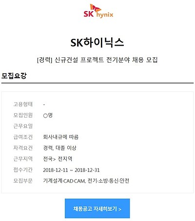 [SK하이닉스] 평균연봉 8,862만 (신규건설 전기분야) 채용 / 국내,해외근무 (~ 12/31) 작성자킴찌짱|작성시간18.12.12|조회수54 목록 댓글 0 글자크기 작게가 글자크기 크게가 더 자세한 정보 및 지원하기 > http://joburl.kr/oq140 다음검색 현재 게시글 추가 기능 열기 북마크 공유하기 신고 센터로 신고 댓글 댓글 0 댓글쓰기 답글쓰기 댓글 리스트