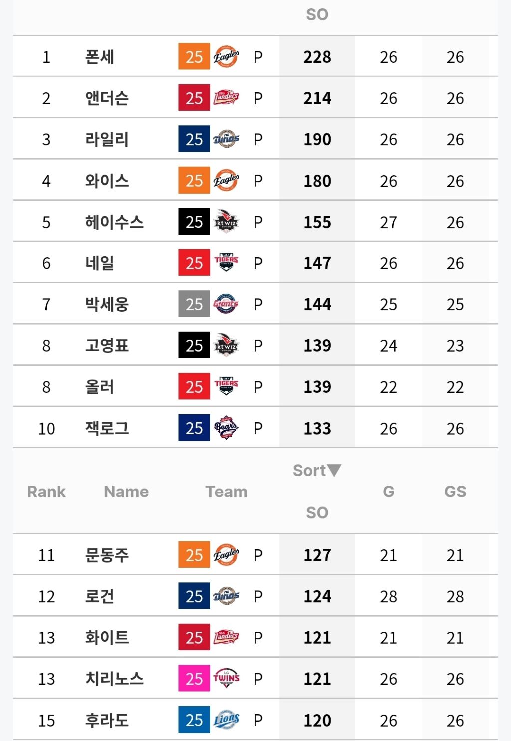 폰세, 앤더슨 다음이라는게 진짜 대단합니다
