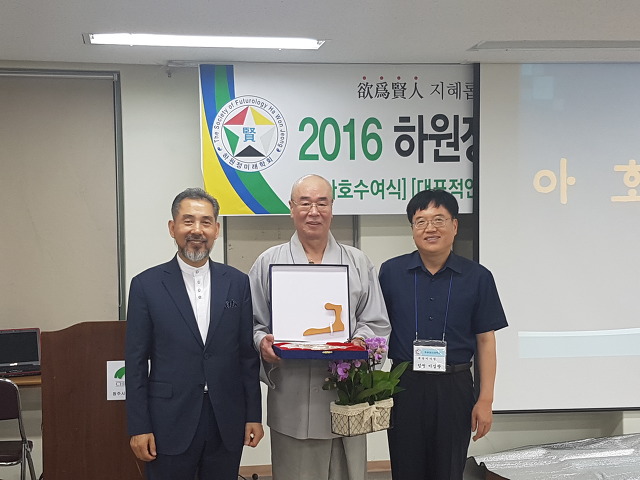 경남 진해에 계시는 교원 설운스님께서는 먼 거리에에도 불구구하고 매 수업때마다, 매년 학술대회 때마다 첨석하여 자리를 빛내주셔서 감사패를 전달했습니다.