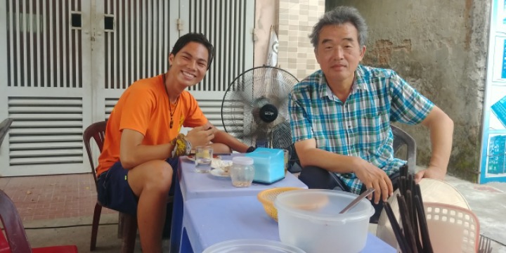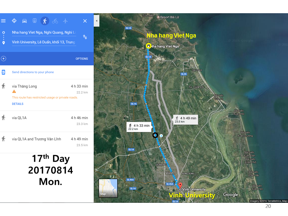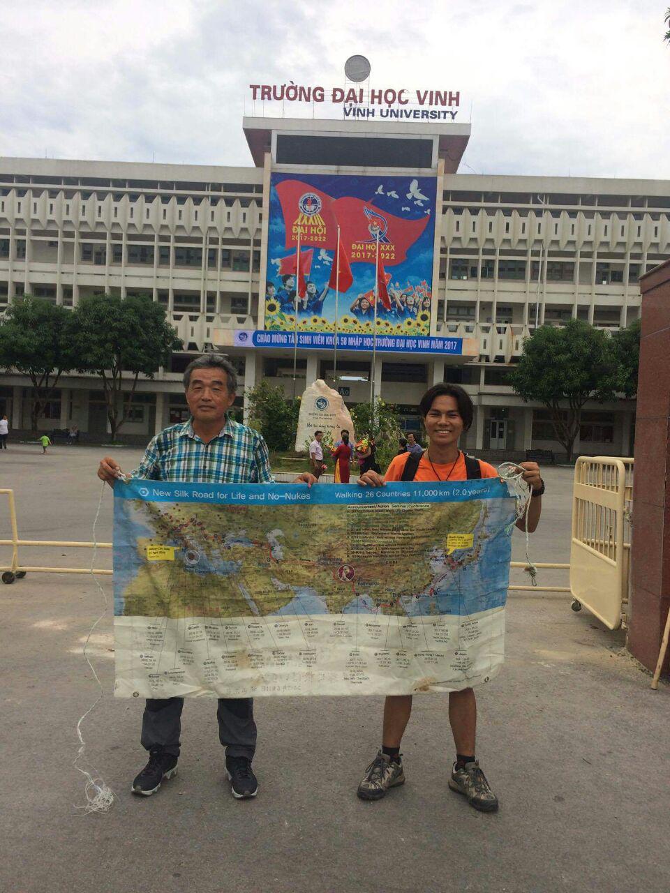 I told him, "Today is my last course in Vietnam. How about walking with me today to Vinh University, about 10 km?"