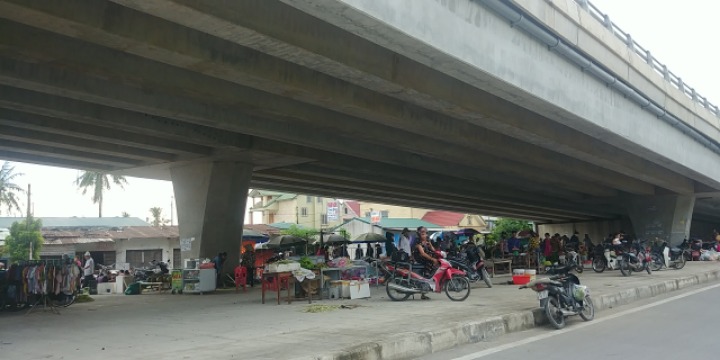 빈 변두리의 고가도로 밑에서 즉석 장터가 열리고 있다.