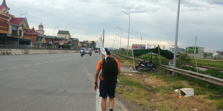 At that time, he was traveling on foot from Hanoi to Ho Chin Min.