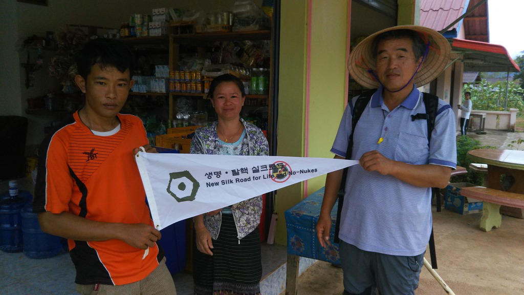 그저께 도착후 도움을 받은 집에 가서 실크로드 휘장을 선물했다.