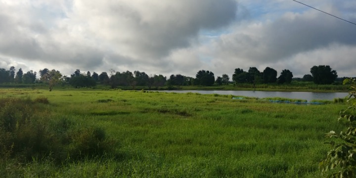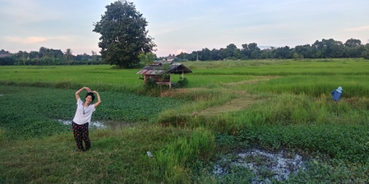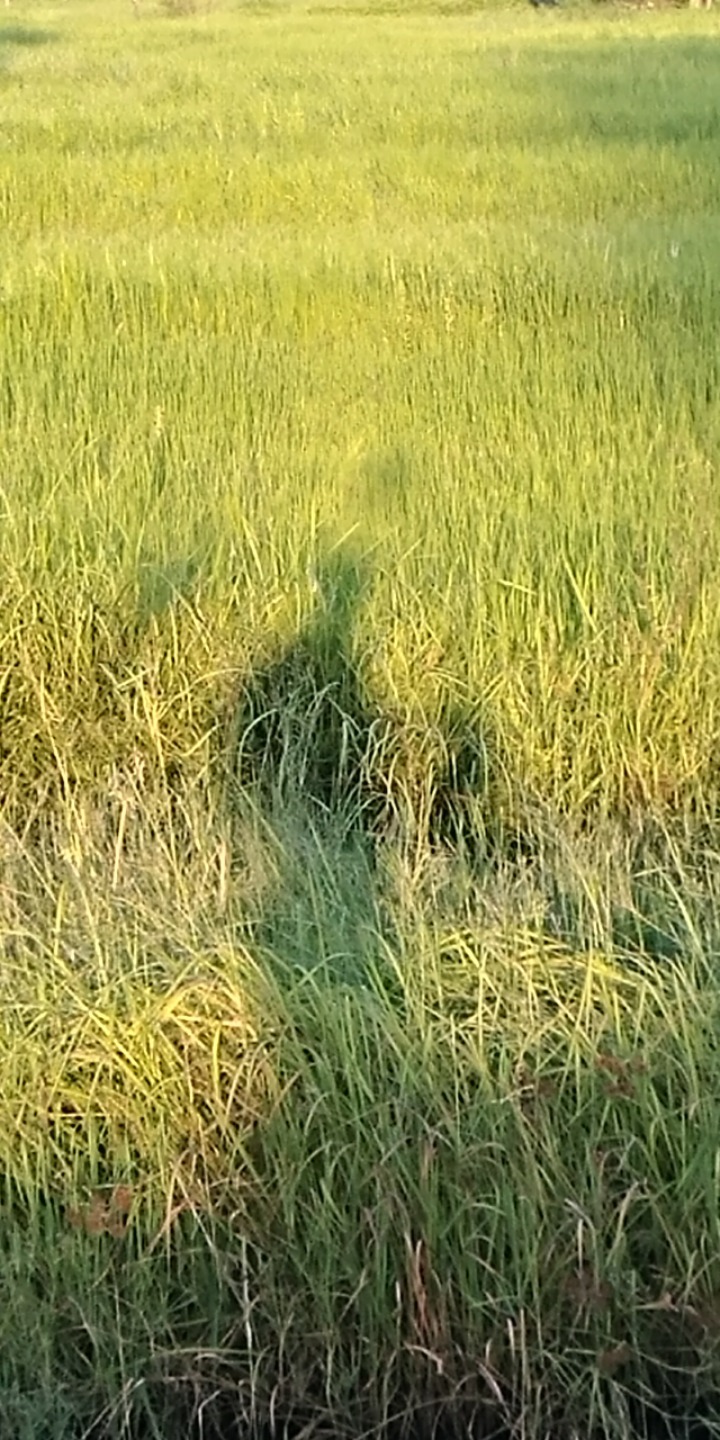 I am walking along the field where the rice is ripening.