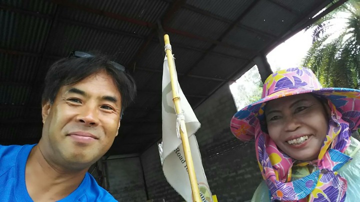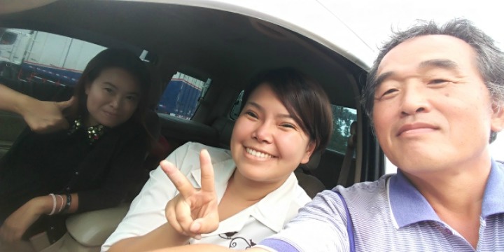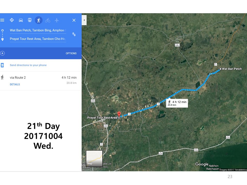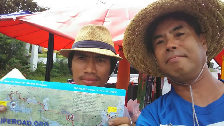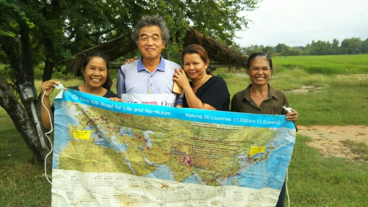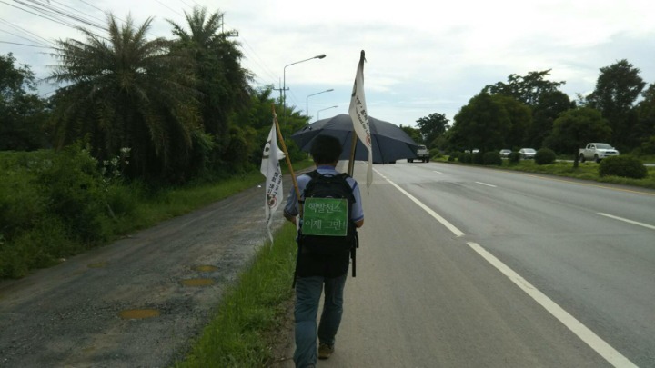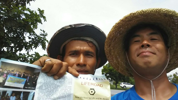 I showed her the leaflet and said, "We are walking from Seoul to Rome, via Bangkok.