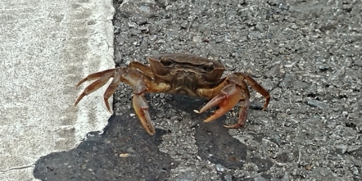At the first picture of crab, you can see that my friend has lost left hand.