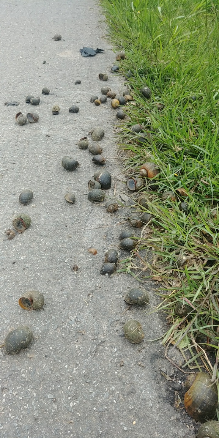 우렁이들이 번식하면서 이렇게 큰길까지 진출해있는 모습을 종종 본다.