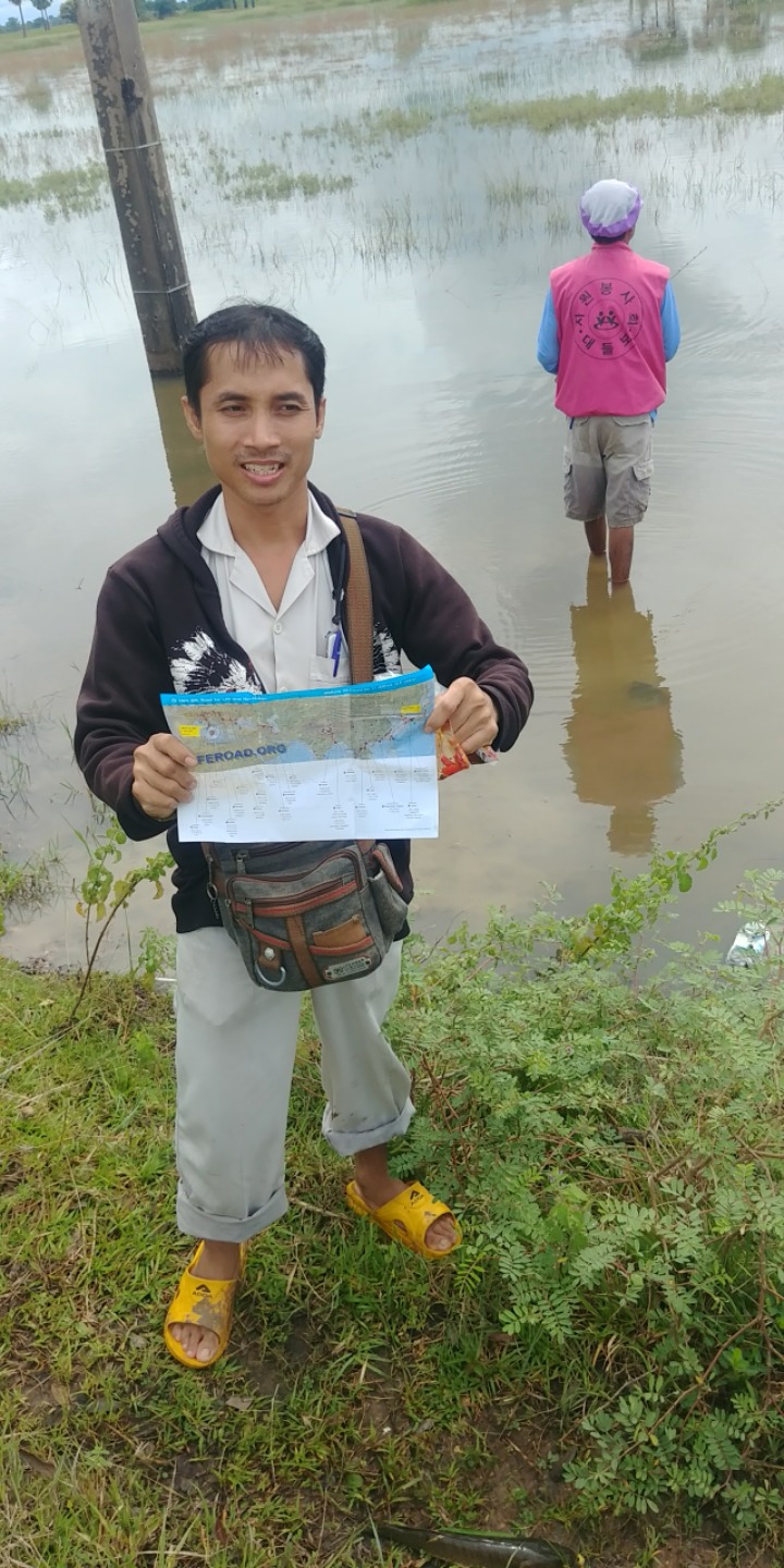 그런데 물속에 있는 분의 옷에 한글로 "대들보 자원봉사회"라고 적혀있다.
