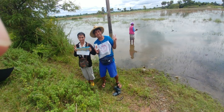On the T-shirt of the fishing man in the water, I could see "대들보 자원봉사회" written in Korean.