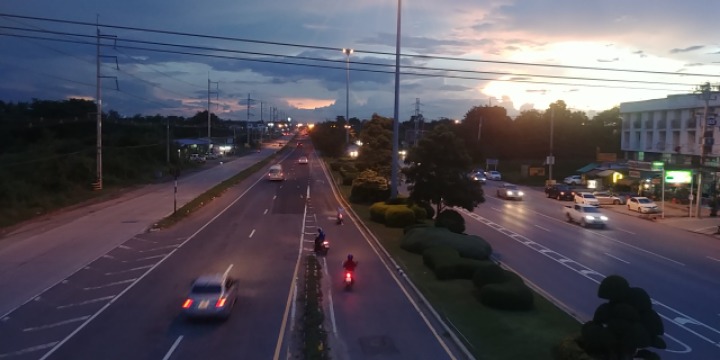 국도2번의 야경 저끝이 방콕이다. 이제 200km쯤 남았다.